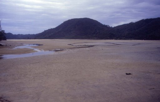 Früh am Morgen, bei Ebbe, überquerten wir das Awaroa Inlet.