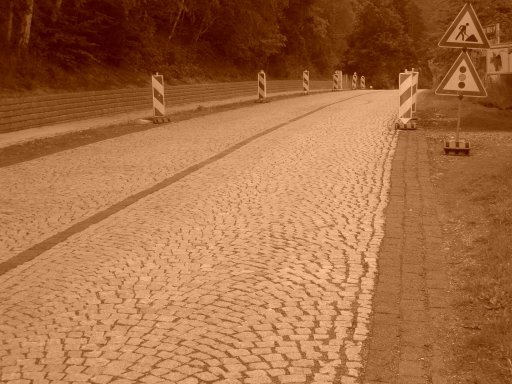 Landstrasse mit Kopfsteinpflaster